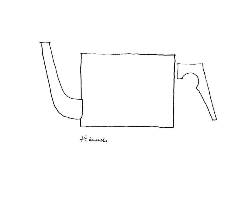 After seeing Peter Holmblad's sketches, Arne Jacobsen took a paper napkin and began to draw what would later become the teapot in the Cylinda-line series. The drawing looked simple, but producing the tea pot was extremely complicated.