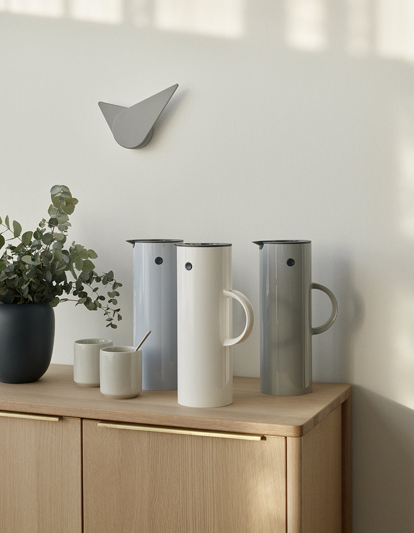 EM77 was designed by Erik Magnussen in 1977, and since then, the vacuum jug for coffee or tea has been made in Denmark in more than 100 different colours. The vacuum jug is a genuine Danish design icon, found in the studios of architects and in private homes all over the world. The sleek and minimalistic design will fit on all tables and keep the coffee or tea warm longer during breakfast, meetings, and in the home office. It can also keep your drinks cold for hours, if you prefer a refreshing iced tea or coffee.
