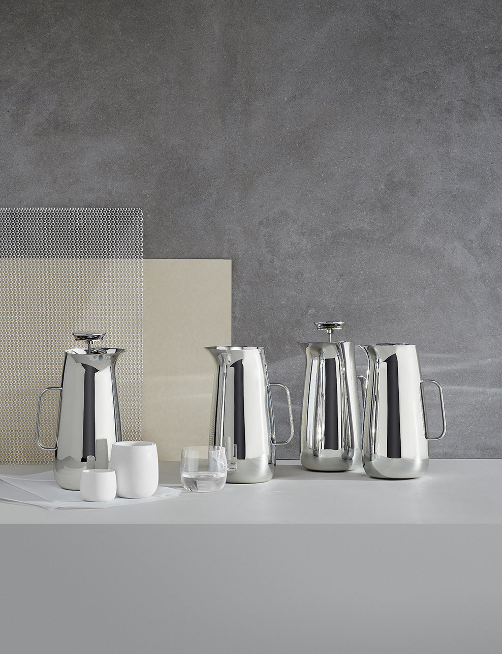 His designs for Stelton bring together simple sculptural form and soft geometry, to create exceptionally crafted tableware for a wide range of settings. From carafes to espresso cups, each object is a response to its specific function, while embodying a shared language.